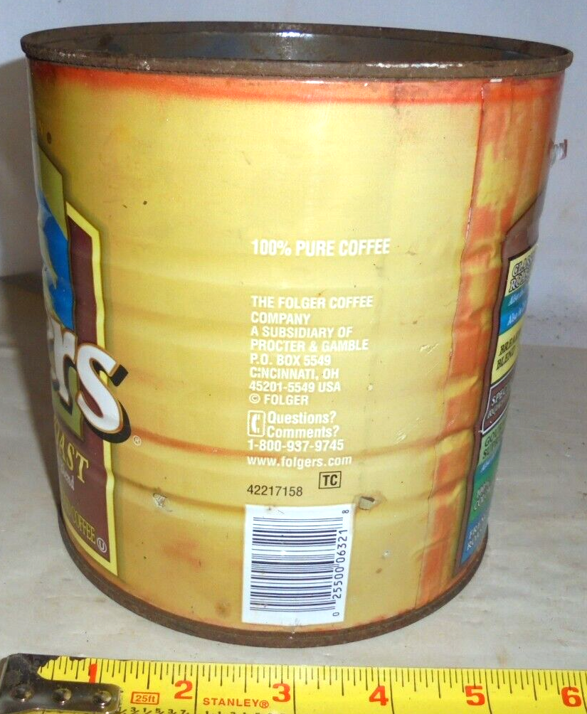 VINTAGE METAL FOLGERS COFFEE CAN Folgers Coffee Metal Can The coffee company folgers stopped using metal coffee cans in 2004, instead switching to plastic canisters. Find many great new & used options and get the best deals for folgers classic roast 26oz coffee metal tin can rusty vintage barn find old at the best. Although it’s true that folgers stopped using metal cans in 2004, and maxwell house was. Folgers Coffee Metal Can.