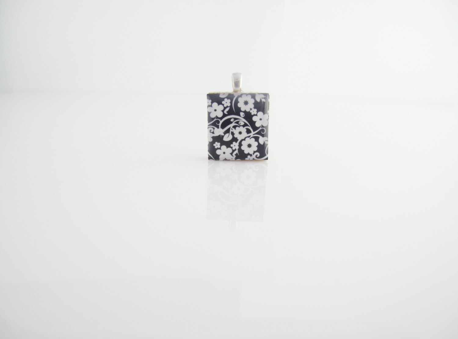 White Flowers Necklace on a Black Background Black and White Pendant