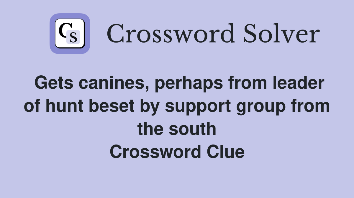 Gets canines, perhaps from leader of hunt beset by support group from
