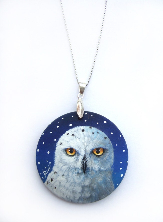 Hand Painted Art Necklace With an Irresistible Snowy Owl Etsy