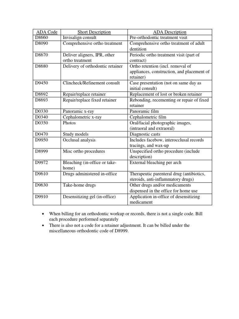 ADA Ortho Codes PDF Orthodontics Drugs