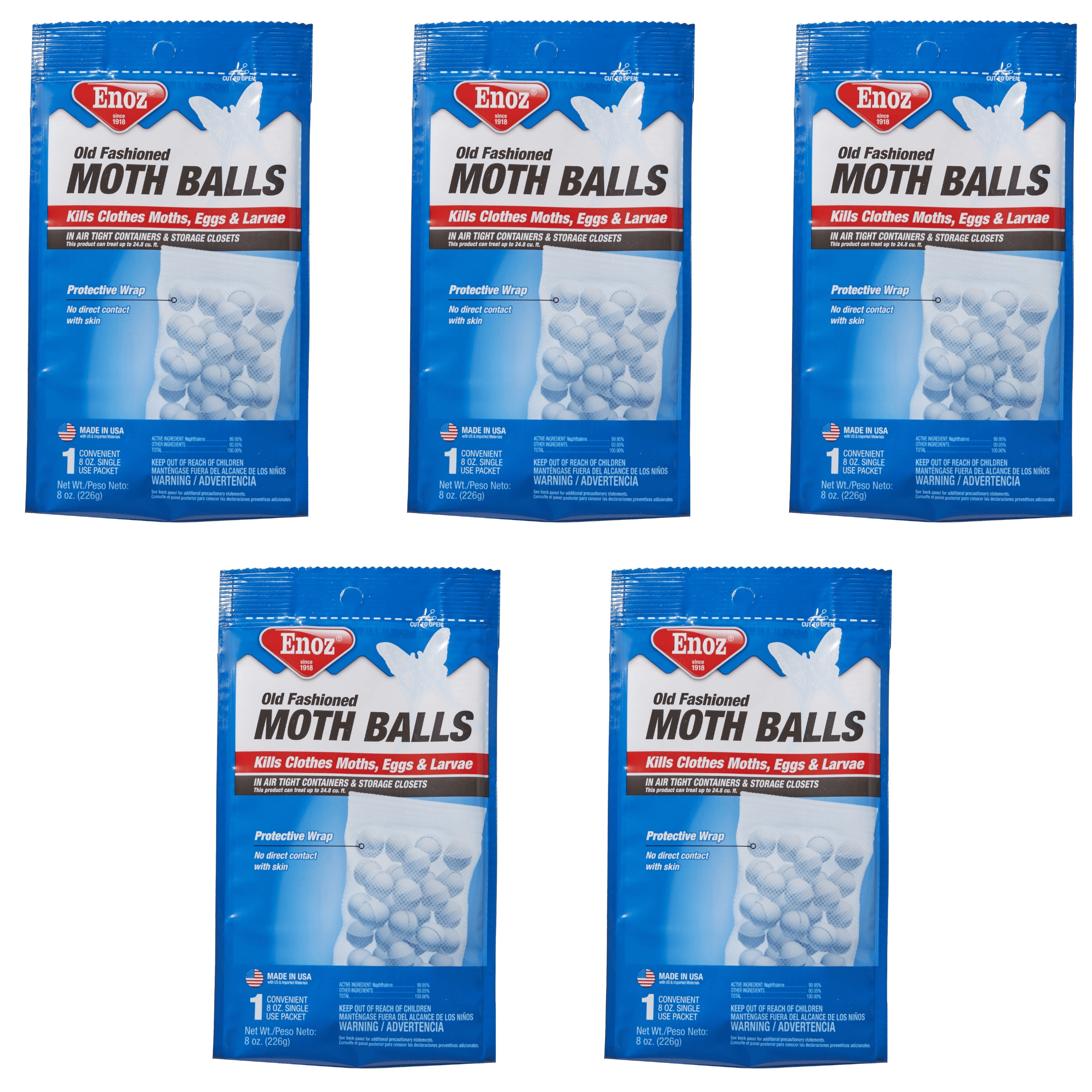 Enoz 16 oz. Old Fashioned Moth Ball Packets ReSealable BagE72.1 The Old Fashioned Moth Balls keep your clothes safe from moths with enoz classic old fashioned moth balls! This product can treat up to 43.7 cubic feet. enoz old fashioned moth balls protect clothing and other materials by killing clothes moths and carpet beetles and their eggs and larvae. Check each product page for other buying options. Old Fashioned Moth Balls.