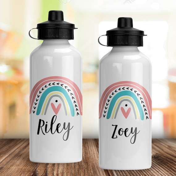 Personalized Water Bottle for Girls Boho Rainbow Gift for School