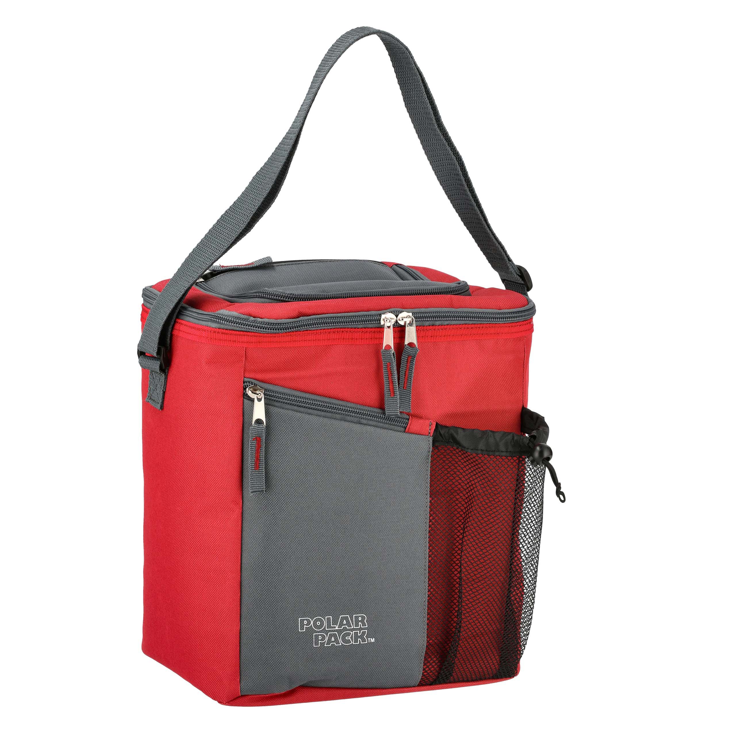 Polar Pack Insulated 18 Can Flip Top Soft Sided Cooler, Red & Gray