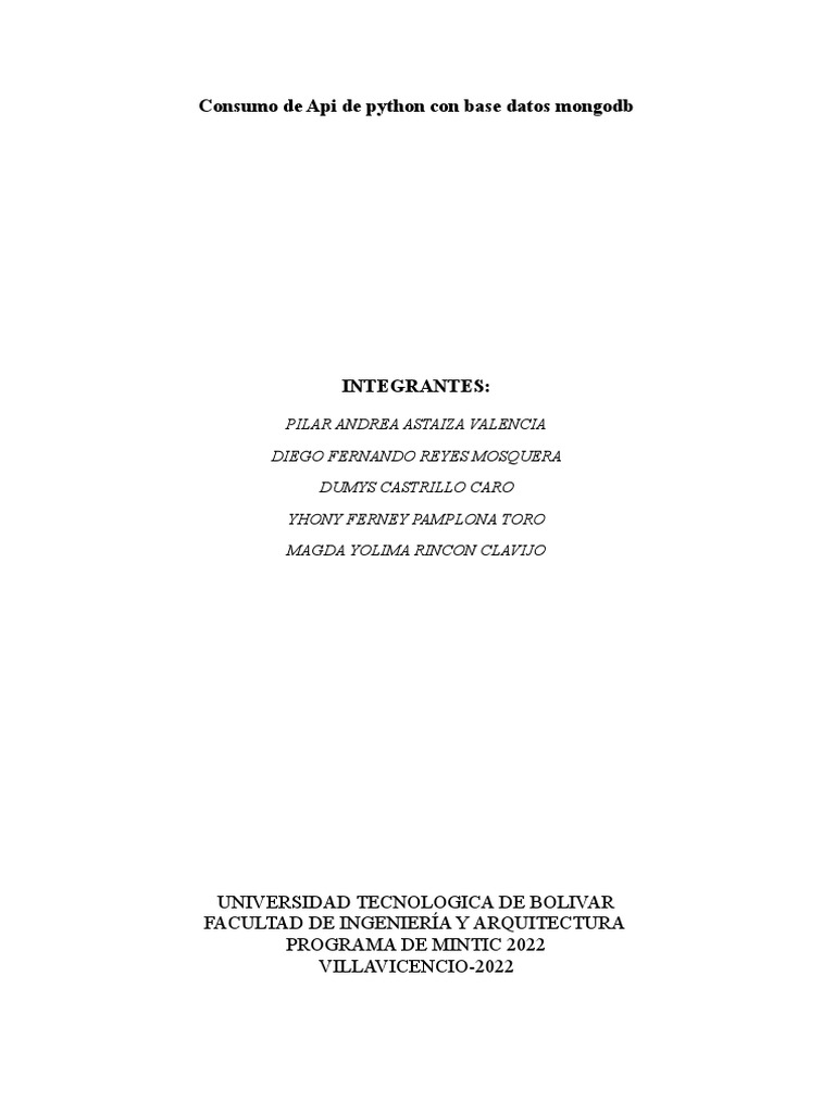 Consumo de API de Python Con Base Datos Mongodb PDF