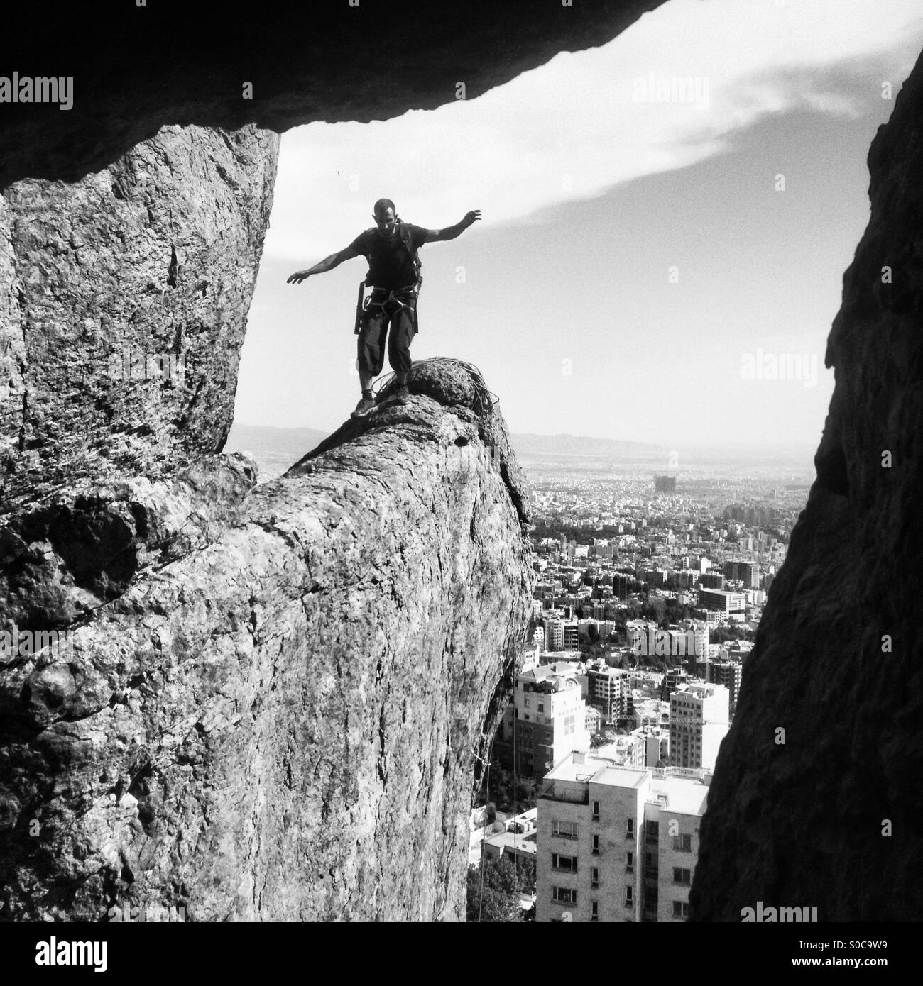 Rock climber walking on top of a cliff Stock Photo Alamy