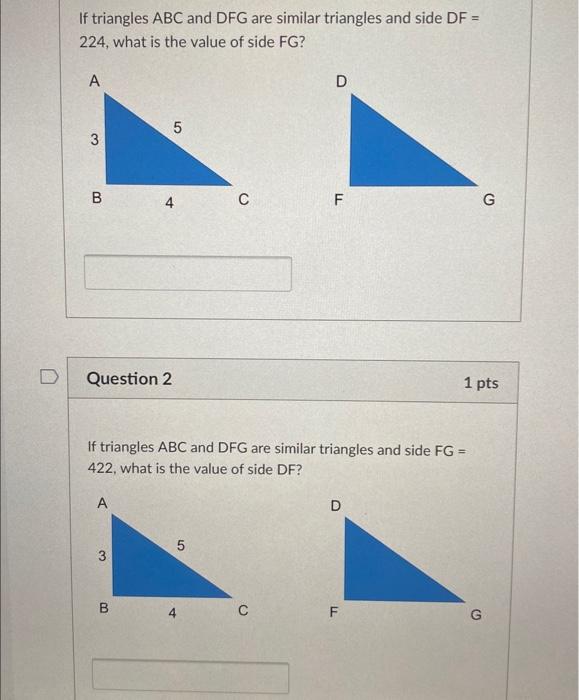 Solved If triangles ABC and DFG are similar triangles and