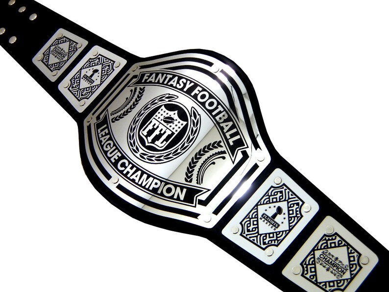 Football Championship Belt Fantasy champs is your home for fantasy football trophies, fantasy football rings, fantasy football draft boards, awards, plaques, and our brand new fantasy championship belts! Customizable championship belt for fantasy football leagues! Undisputed belts is the leader in custom championship belts. A genuine leather belt with gold and silver plating, engraved plates and velvet storage bag. Forget about standard trophies. Football Championship Belt.