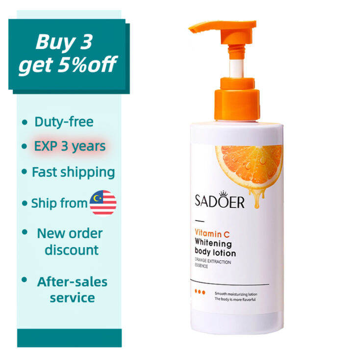 【Rdy Stock现货】SADOER Vitamin C Whitening Body Lotion niacinamide 维生素C Sadoer Vitamin C Whitening Body Lotion Vitamin c helps to reduce melanin precipitation, even skin tone, improve skin brightness and make skin look brighter and. Contains vitamin c essence, the texture is full and moist. Sadoer vitamin c whitening body lotion fresh orange essence hydrating moisturizing body lotion 250g features: Sadoer vitamin c whitening body lotion r 69.00 zar add to cart. Sadoer vitamin c brightening. Sadoer Vitamin C Whitening Body Lotion.