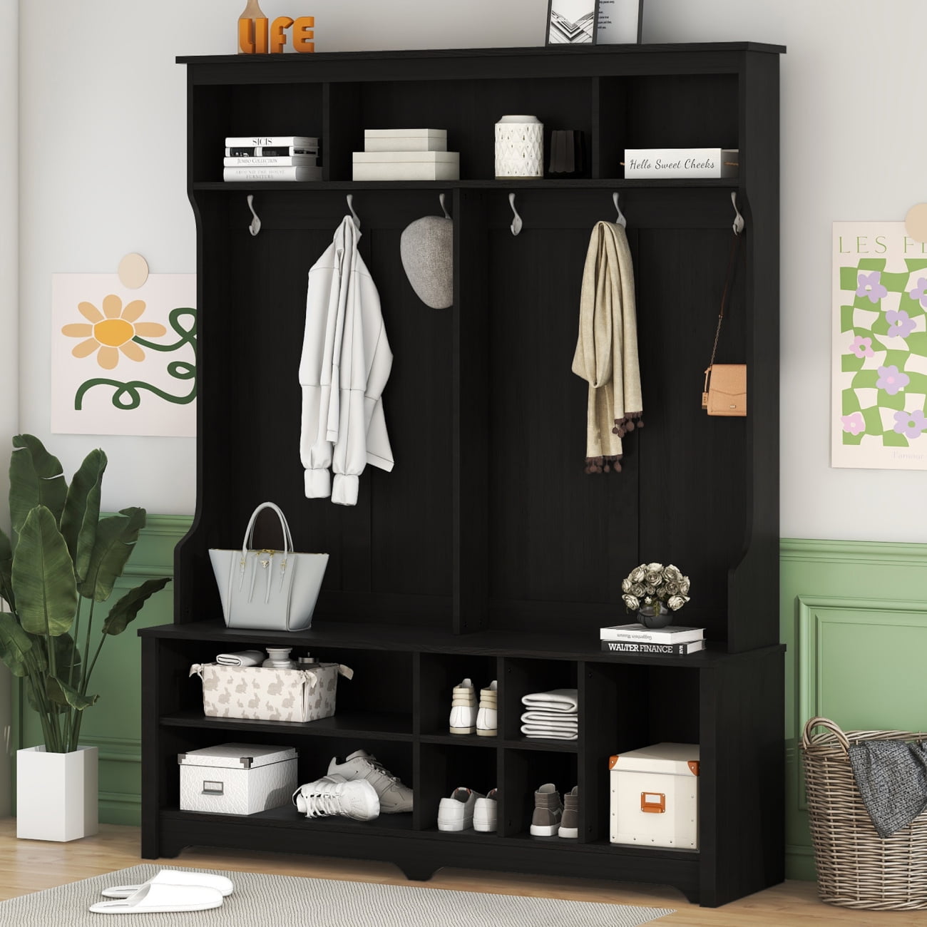 White Bench Hall Tree white chalemet hall tree 39.4'' wide with bench and shoe storage. this hall tree and bench streamlines your entryway with plenty of storage and a classic coastal farmhouse look. Browse a large selection of hall trees in a wide range of sizes, finishes. the tall hall tree has a rustic farmhouse look that's easy on the eye,. White Bench Hall Tree.