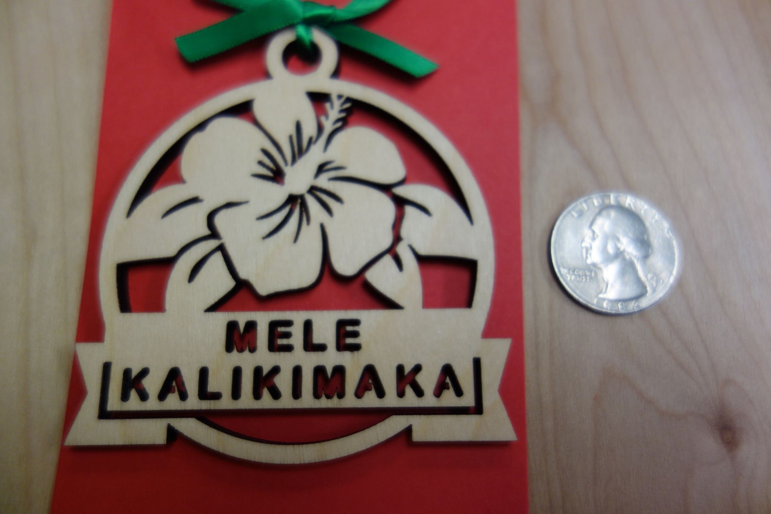 Wooden Mele Kalikimaka Hibiscus Flower Hawaiian Christmas Ornament