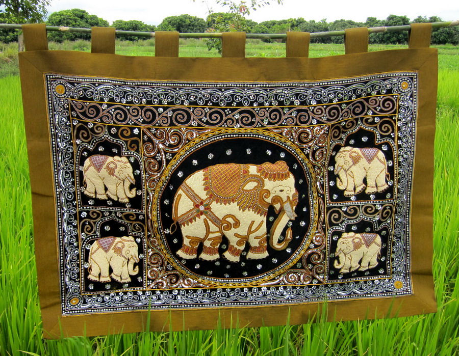 Lucky elephant tapestry wall hanging black gold sequins beaded Thailand Elephant Wall Hanging Thailand Add a touch of exotic elegance to your home with this stunning thailand elephant wall hanging. Check out our thailand elephants wall art selection for the very best in unique or custom, handmade pieces from our prints shops. Check out our thailand elephant wall decor selection for the very best in unique or custom, handmade pieces from our wall hangings. Elephant Wall Hanging Thailand.
