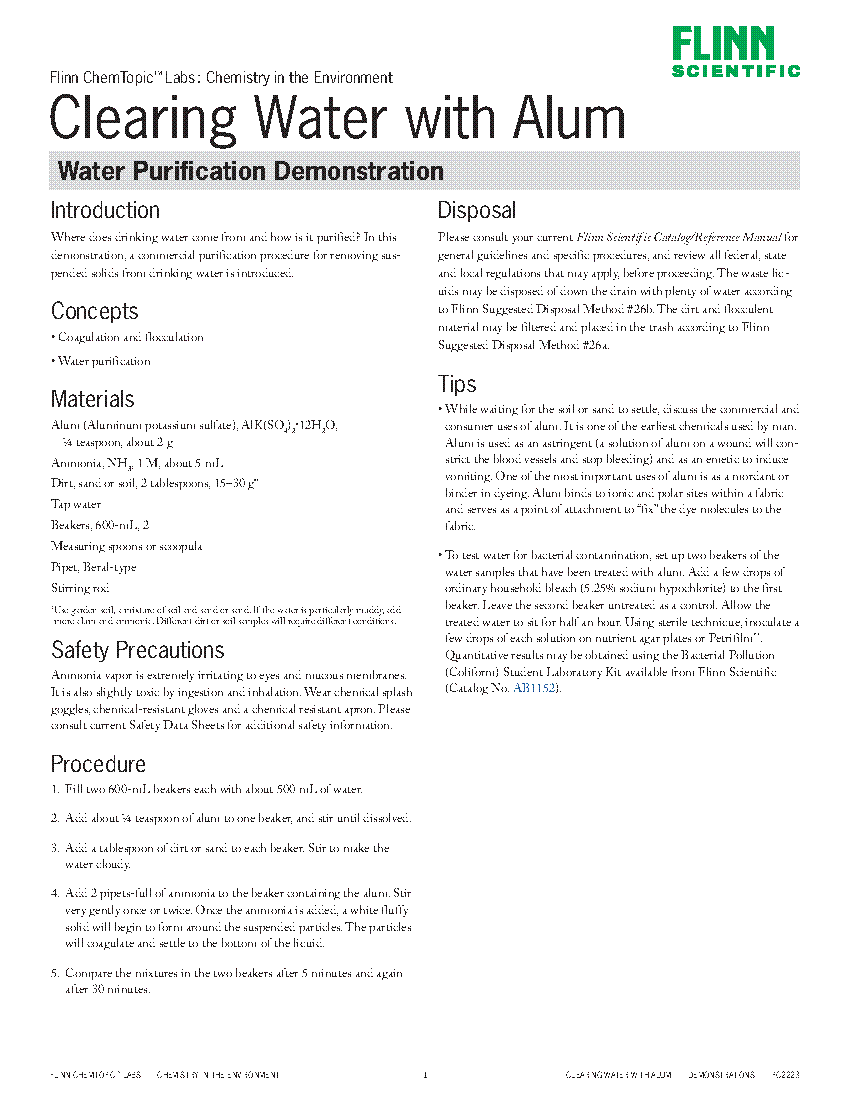 Clearing Water with Alum Water Purification Demonstration—ChemTopic
