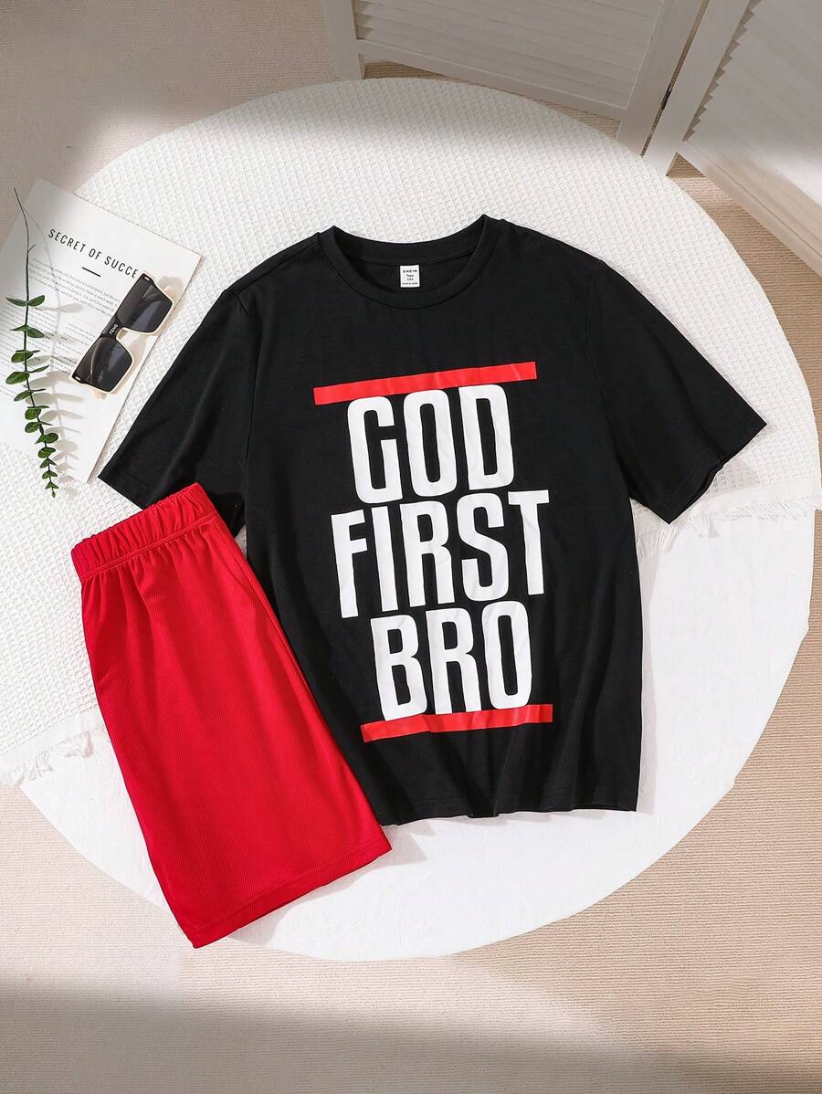 SHEIN Teen Boy CasualFit Casual Letter Printed Round Neck Short Sleeve