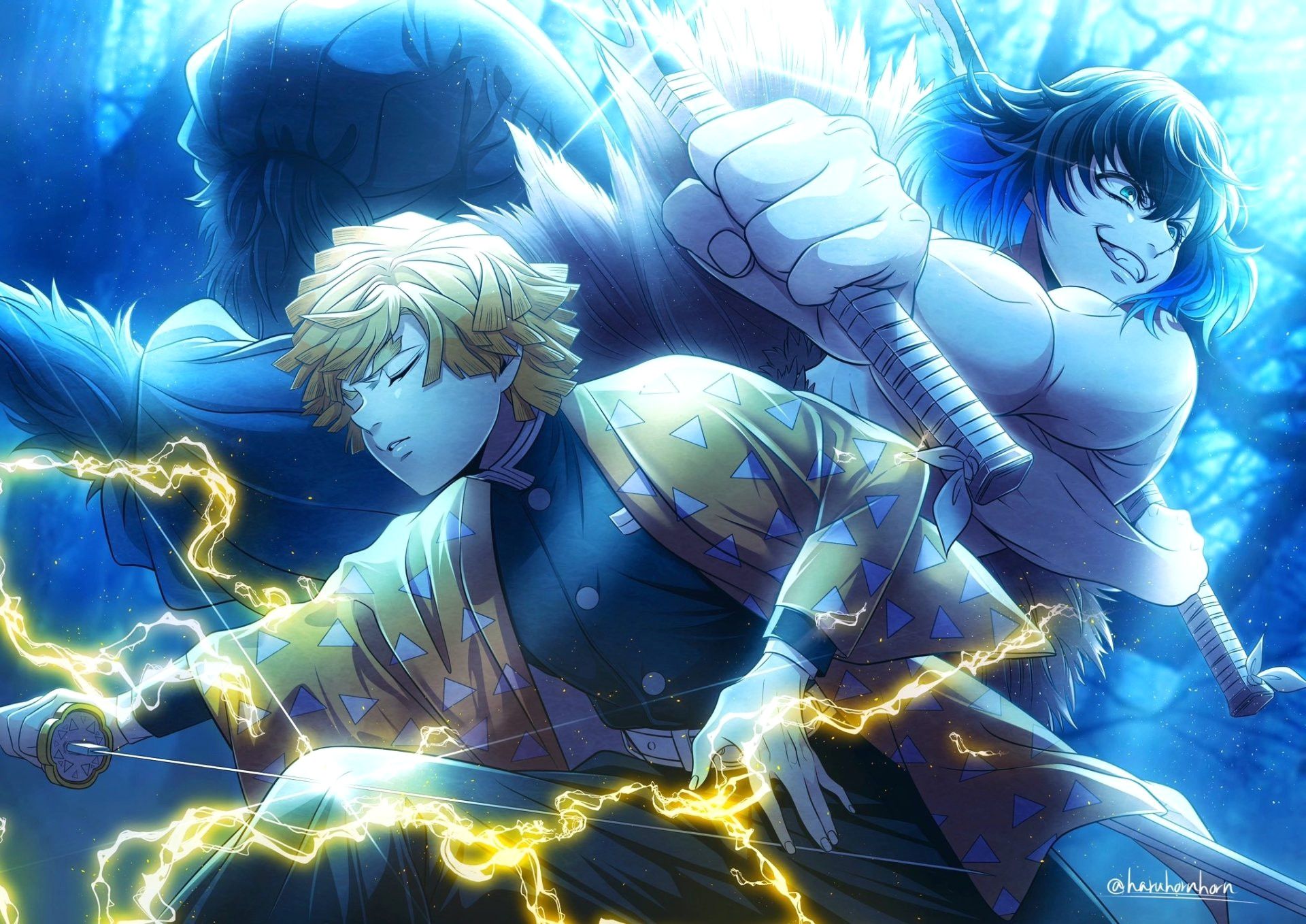 Demon Slayer Trio Wallpaper Tanjiro, inosuke & zenitsu by rwero wallpaper background image. 3840x2160 demon slayer trio in 4k: This image features the three protagonists from the anime ‘demon slayer: bring the world of demon slayer to your desktop with this stunning 4k wallpaper featuring tanjiro, zenitsu, and inosuke. tons of awesome demon slayer trio wallpapers to download for free. You. Demon Slayer Trio Wallpaper.