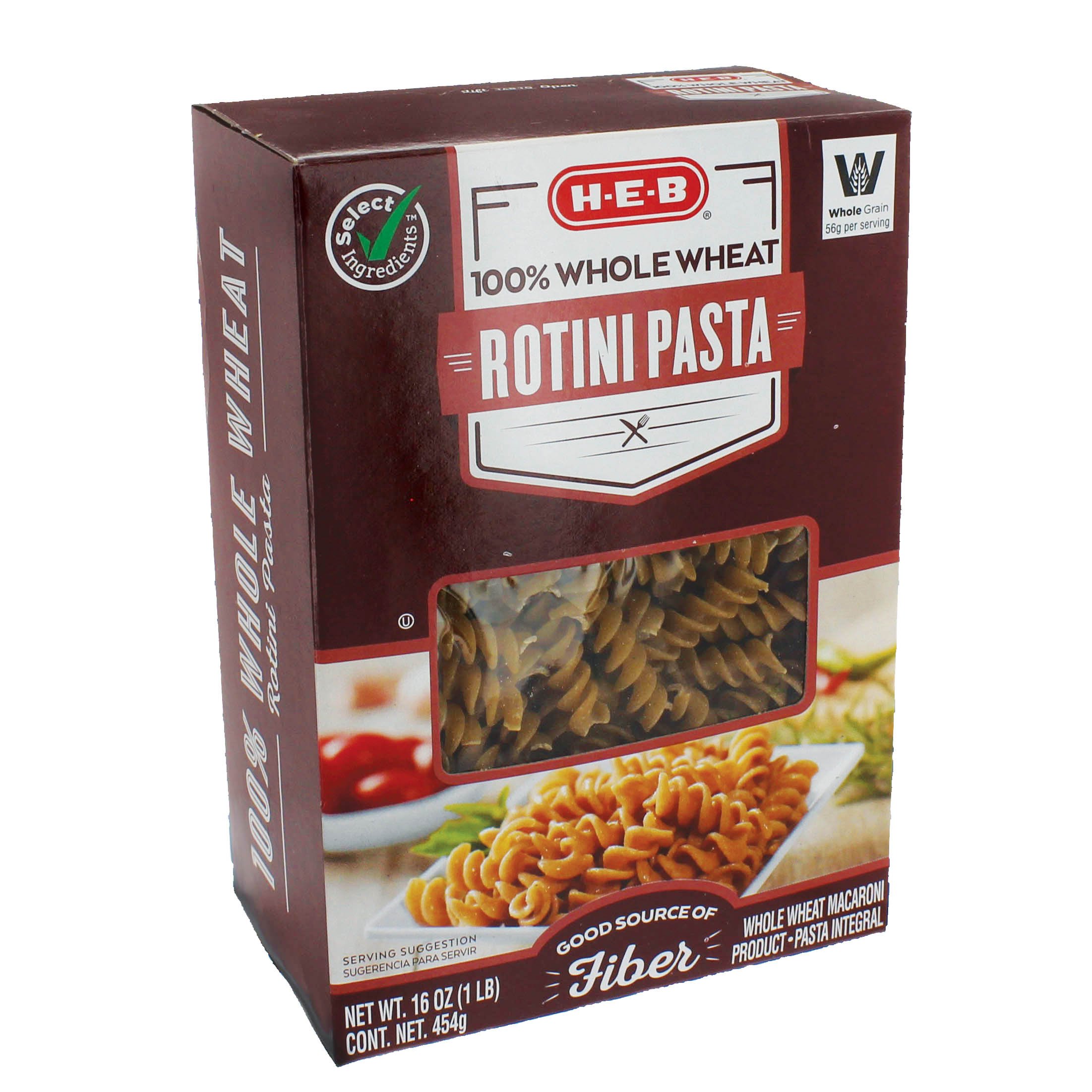 HEB Select Ingredients 100 Whole Wheat Rotini Pasta Shop Pasta at