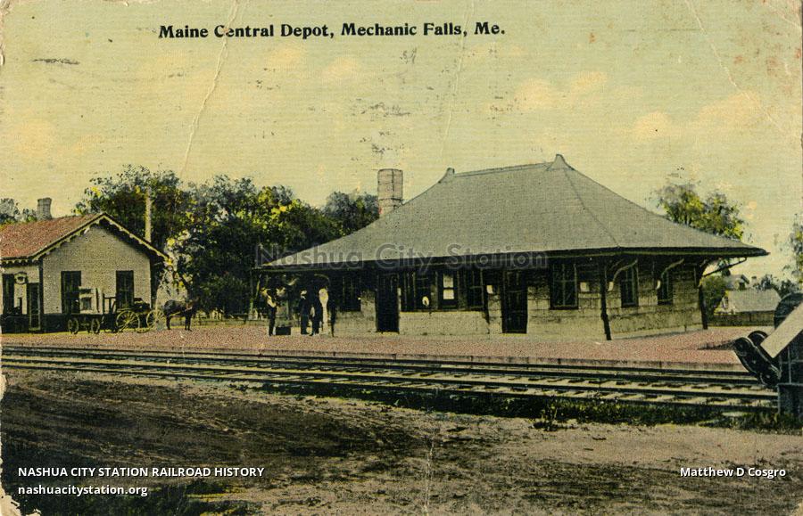 Postcard Maine Central Depot, Mechanic Falls, Maine Railroad History