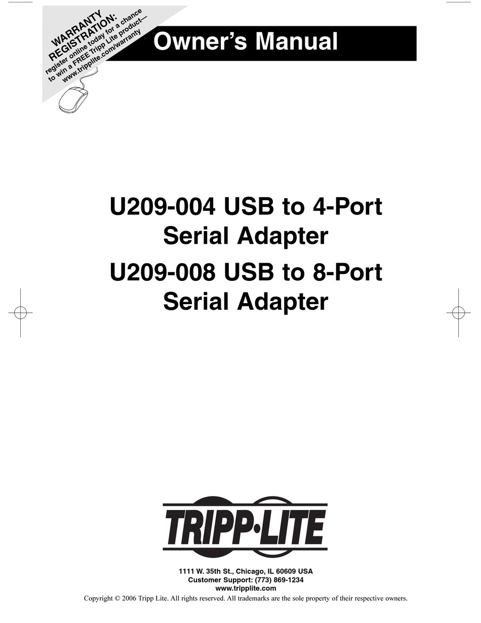 TRIPP LITE USB TO 8PORT SERIAL ADAPTER U209008 OWNER'S MANUAL Pdf