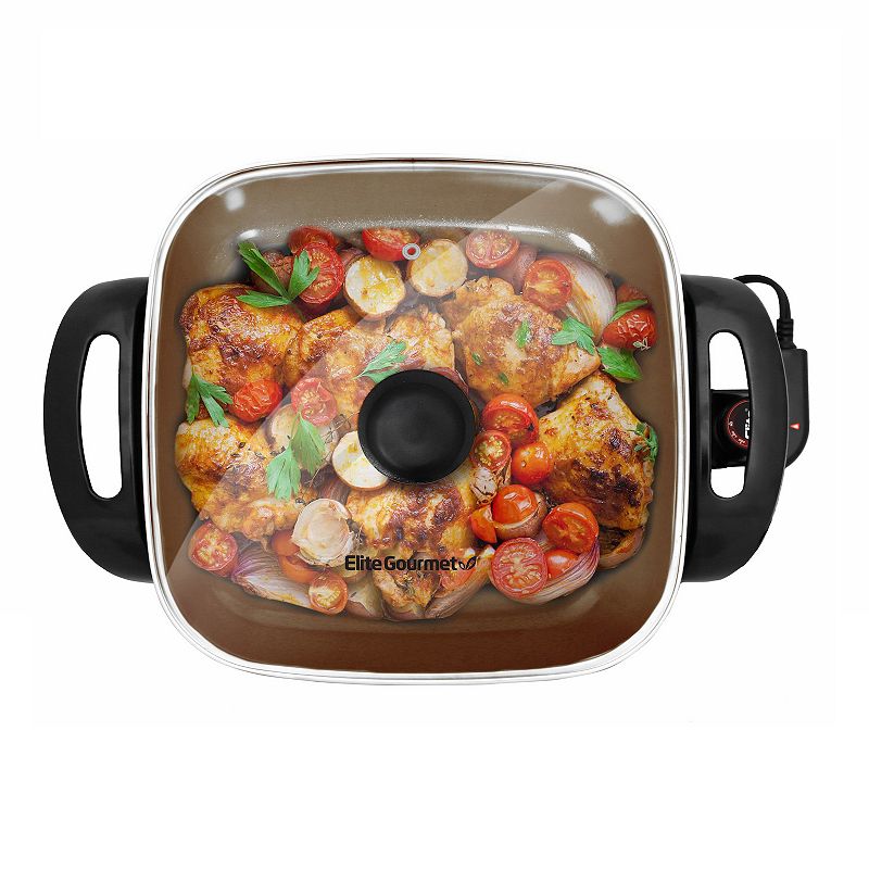 Elite Nonstick Electric Skillet with Glass Lid, Multicolor, 6 QT