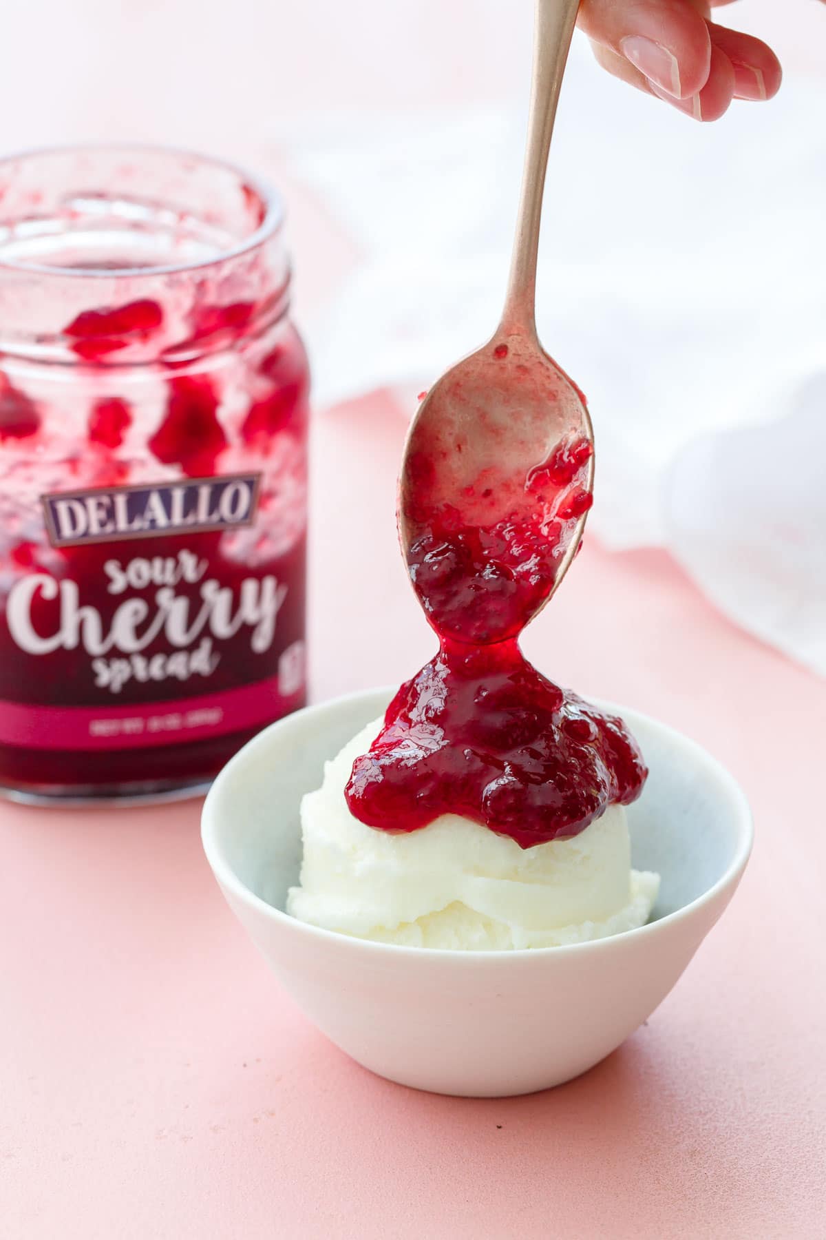 Homemade Frozen Yogurt with Sour Cherry Jam Love and Olive Oil