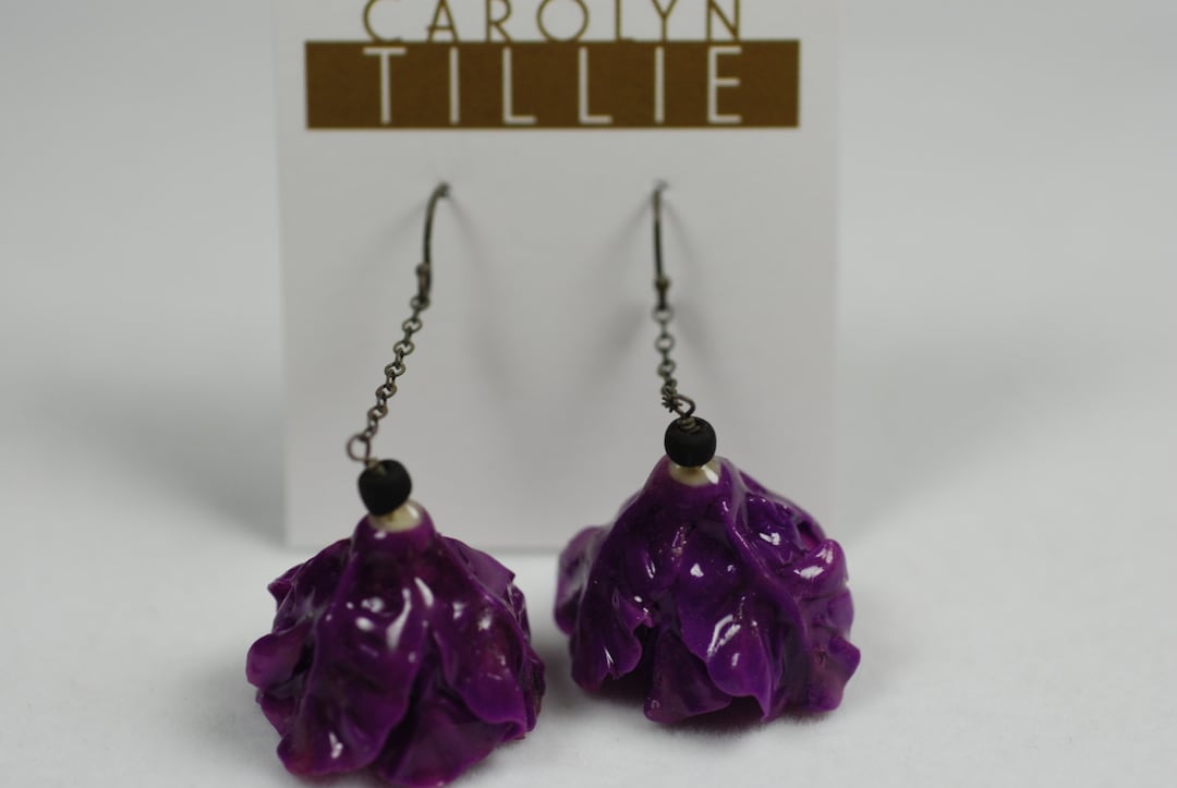 Purple Cabbage Earrings polymer clay and sterling silver Etsy Cabbage Earrings Check out our cabbage earings selection for the very best in unique or custom, handmade pieces from our dangle & drop earrings shops. Check out our cabbage earring selection for the very best in unique or custom, handmade pieces from our earrings shops. These tiny green cabbages are cut in a half and measure 5/8. Great for work & play.. Cabbage Earrings.