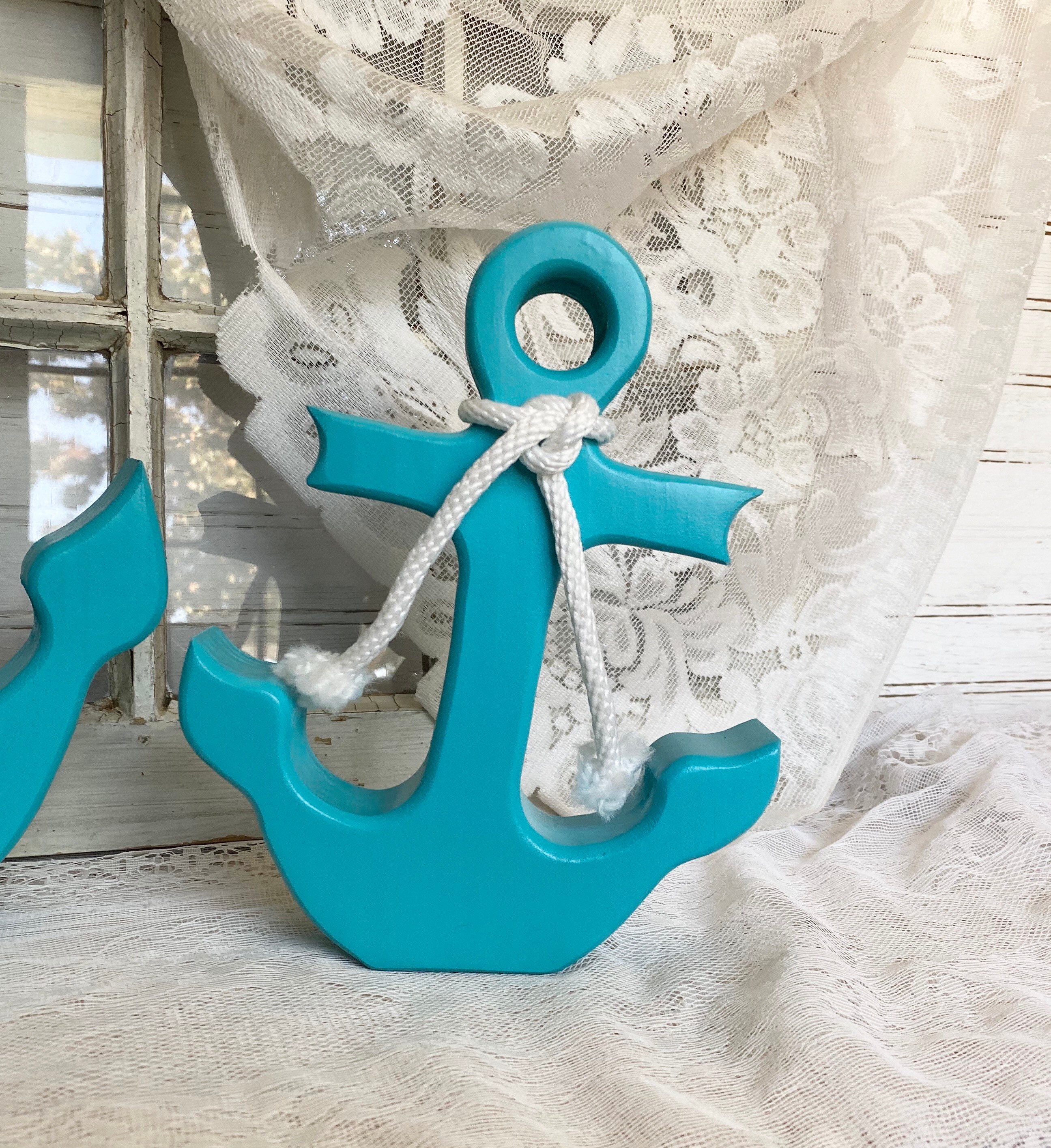 New teal wooden Anchor Set Nautical Boat Anchor Home Décor Etsy