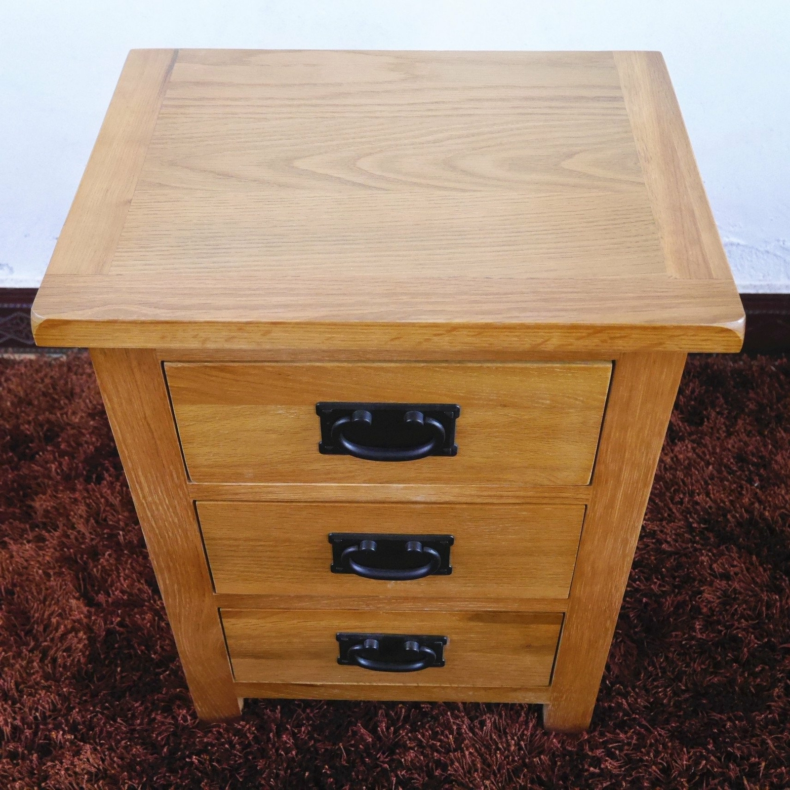 Oak Wood Bedside Table Nightstand 3 Storage Drawer Bed Light Oak