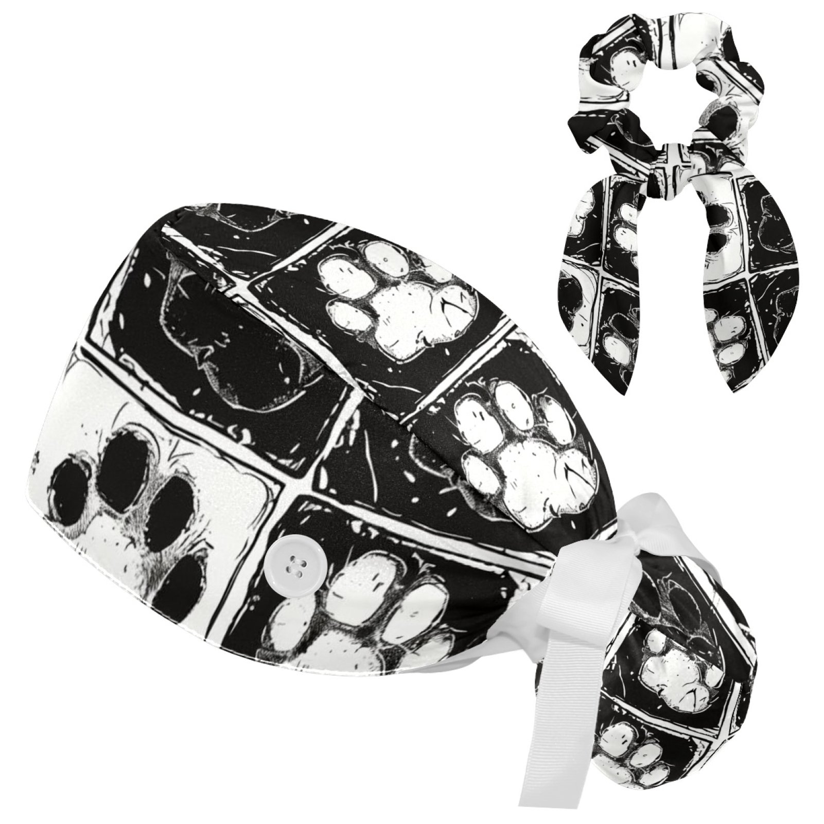 Working Caps with Buttons, Long Hair Scrub Hats Ponytail Holder for