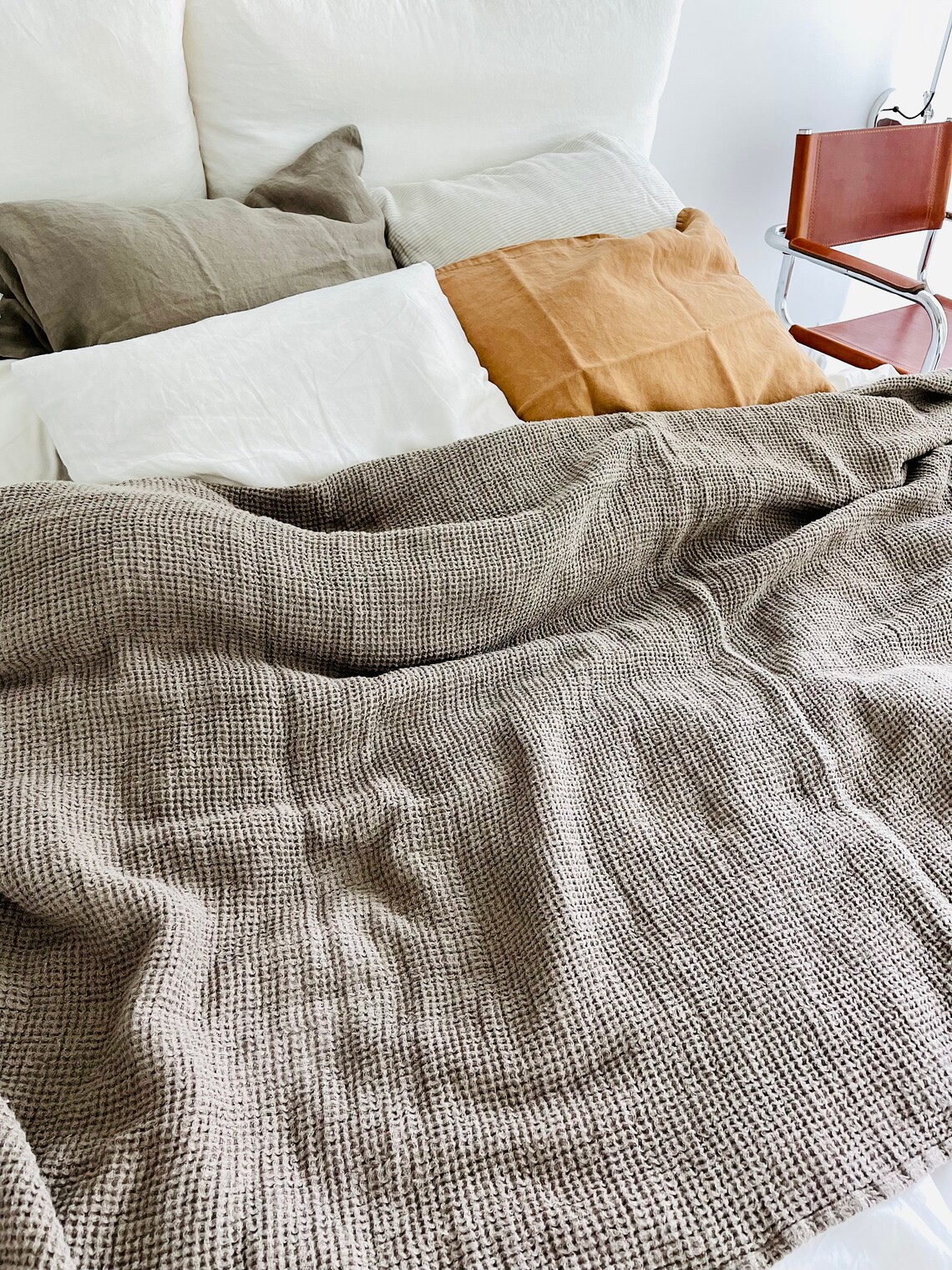 LINEN BLANKET linen Bed Scarf Waffle Linen Blanket . Linen Etsy