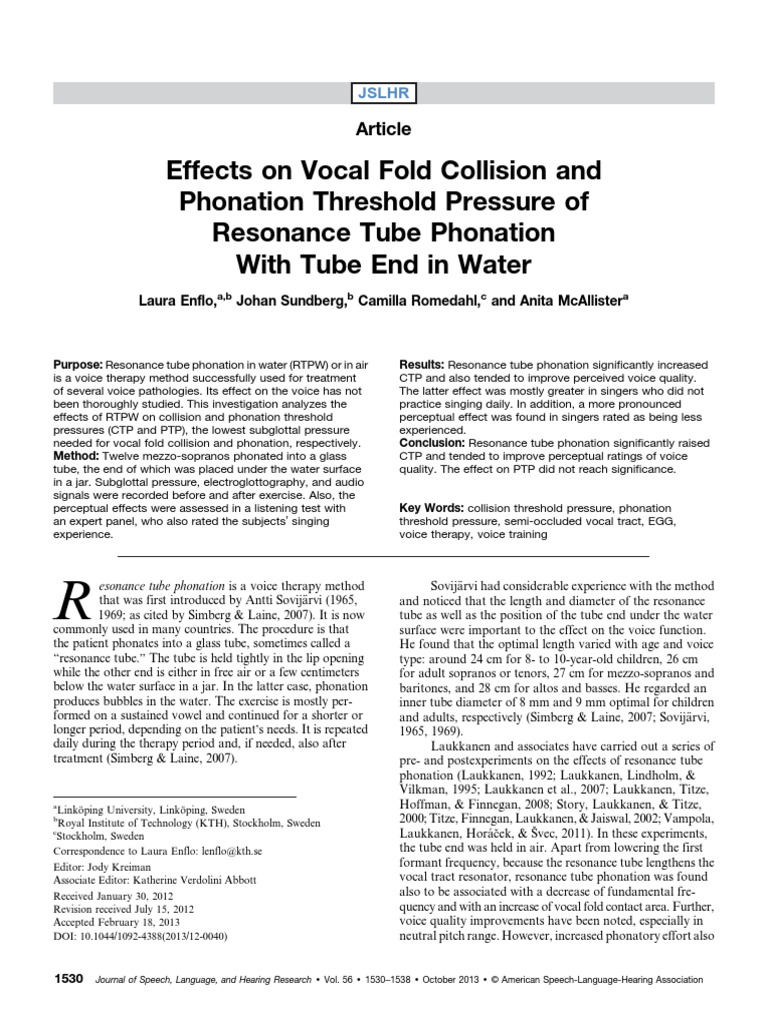 Changes in Glottal Contact Quotient During Resonance Tube Phonation and Voice Resonance Phonation Studies of the respiratory and laryngeal actions required for phonation are. Although there is no direct evidence of phonation sustained dominantly by acoustic loading in humans, instabilities in voice production (or. Phonation, or voice quality, is the production of sound by the vocal folds. Voiced sound is amplified and modified by the vocal tract resonators (the throat, mouth cavity, and. Voice Resonance Phonation.