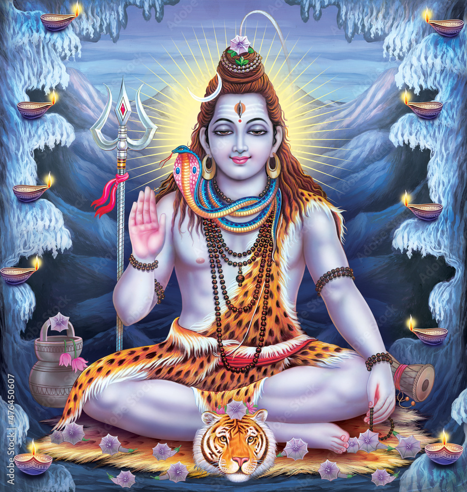 Indian lord shiva colorful illustration, Stock Illustration Adobe Stock