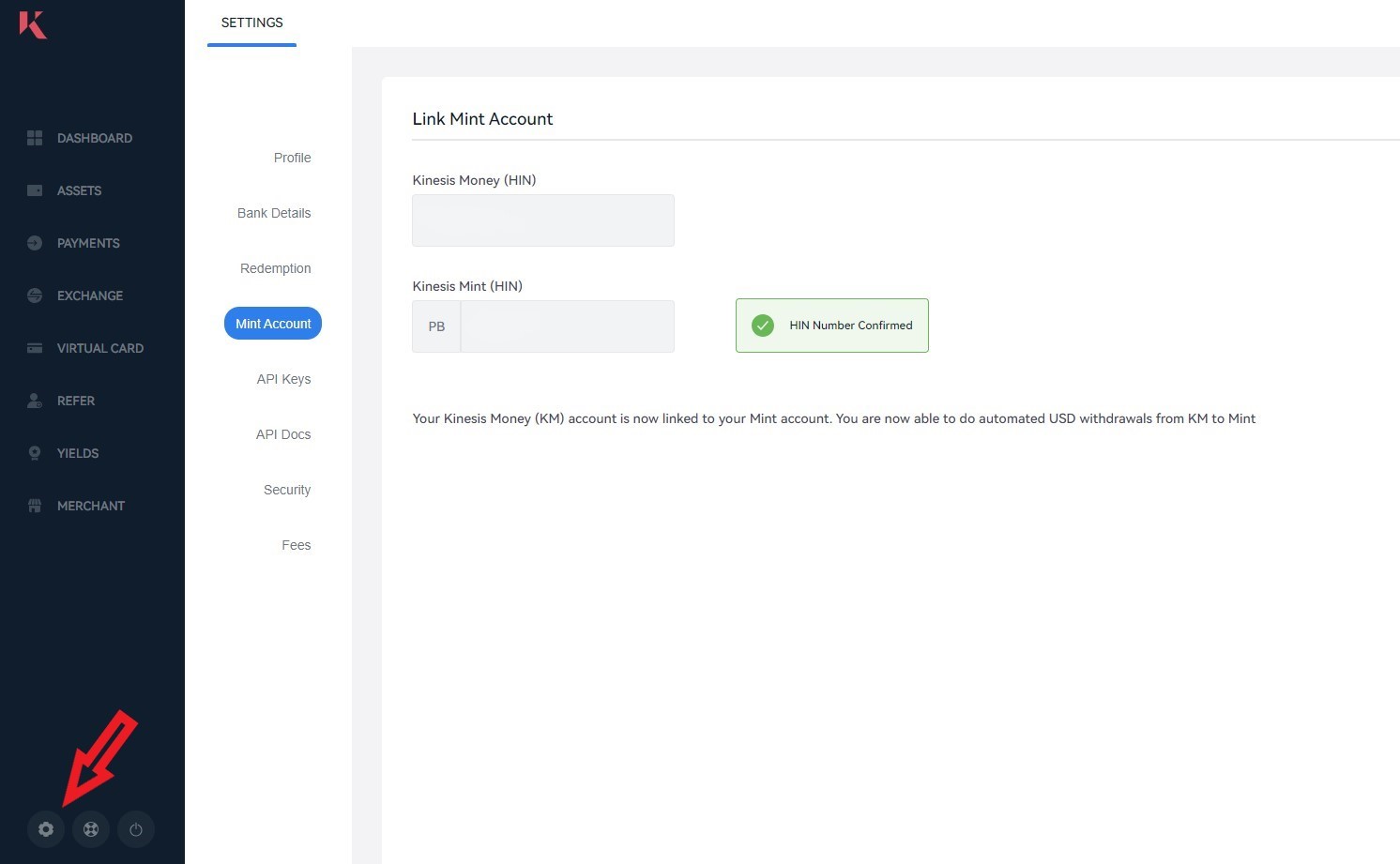 Linking the Kinesis Mint account with the Kinesis platform Kinesis