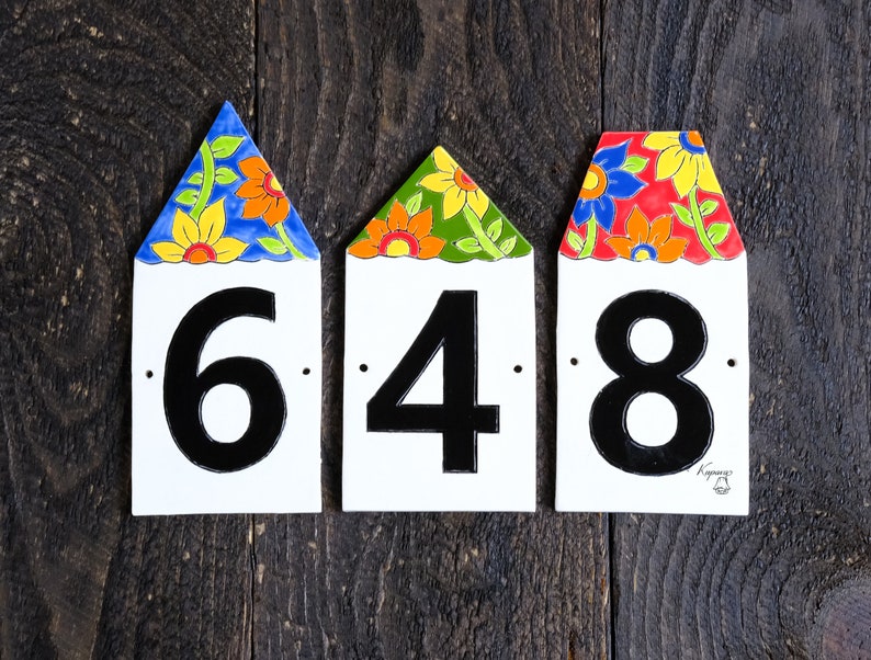 House numbers signs houses with flower roofs ceramic number Etsy