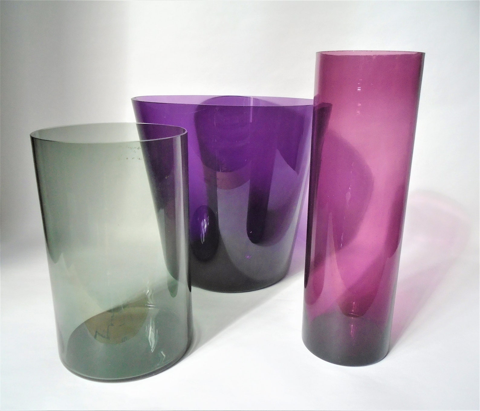Set of Three Glass Vases, Purple Amethyst Gray, Midcentury