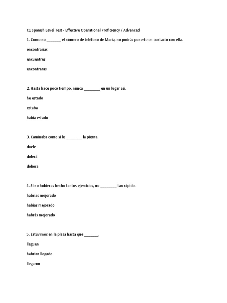 C2 Spanish Level Test PDF