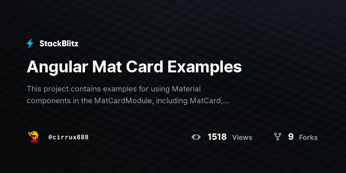 Angular Mat Card Examples StackBlitz