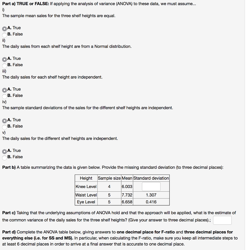 Solved A study investigated the effect of shelf placement on