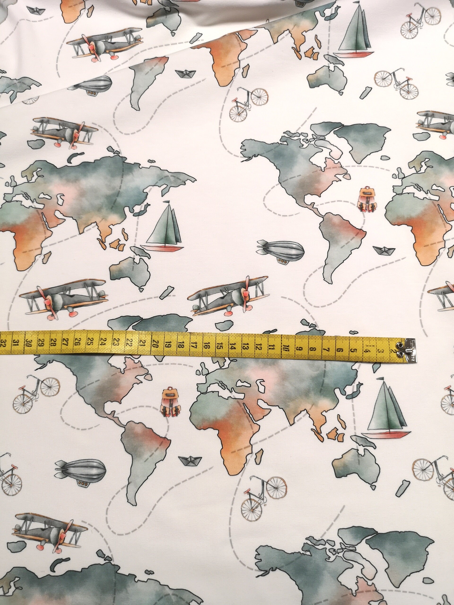 Watercolor Cotton Jersey World Map Boys Fabric Around the Etsy