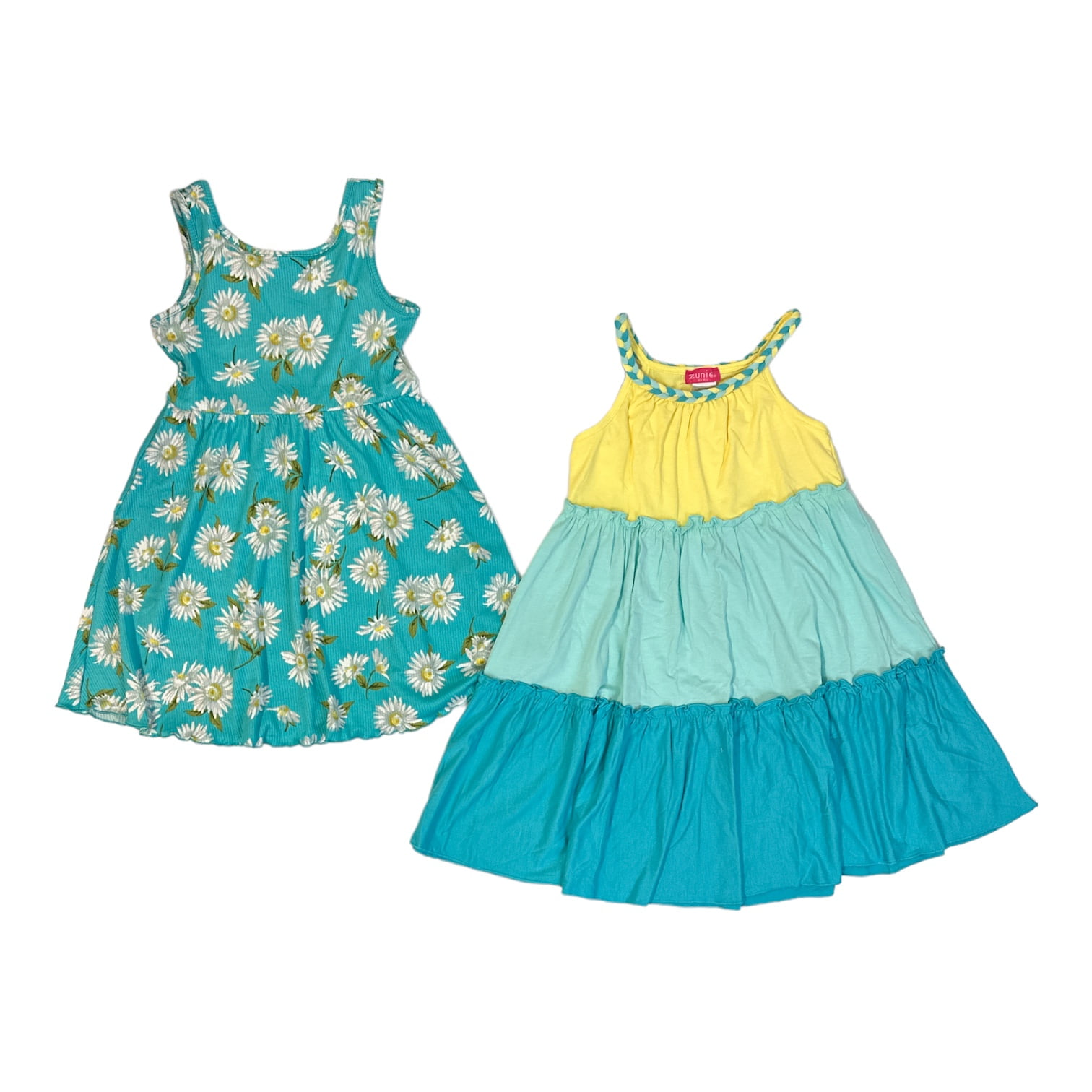 Zunie Girl Girl's 2Pack Sleeveless Soft Knit Any Occasion Dresses (Yellow/Turquoise, L (10/12