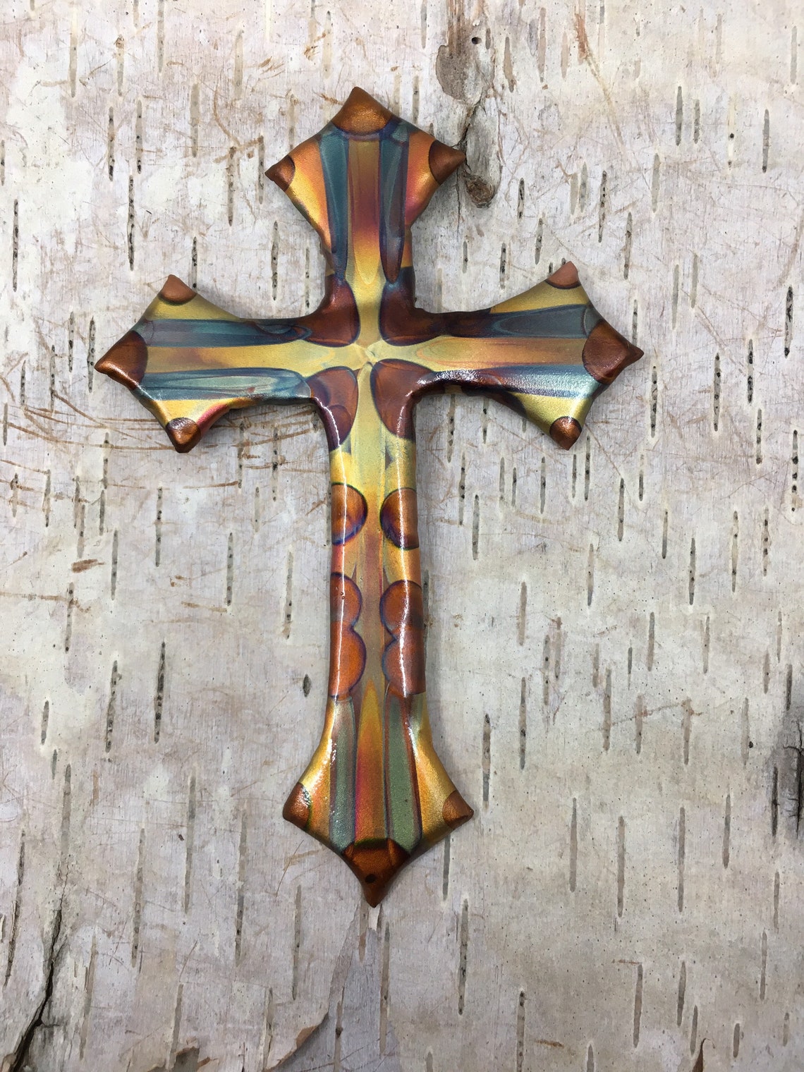Ornate Copper Cross for Wall. FlamePainted Copper Christian. 2 Etsy