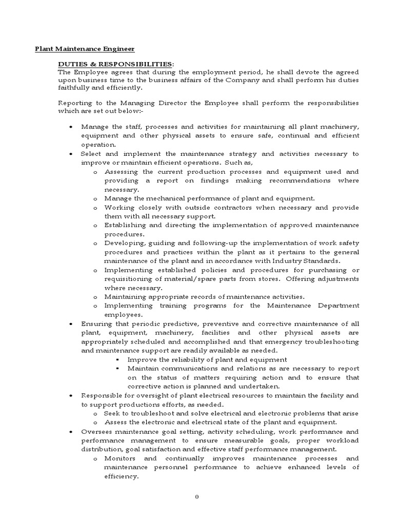 Plant Maintenance Engineer PDF Employment Economies