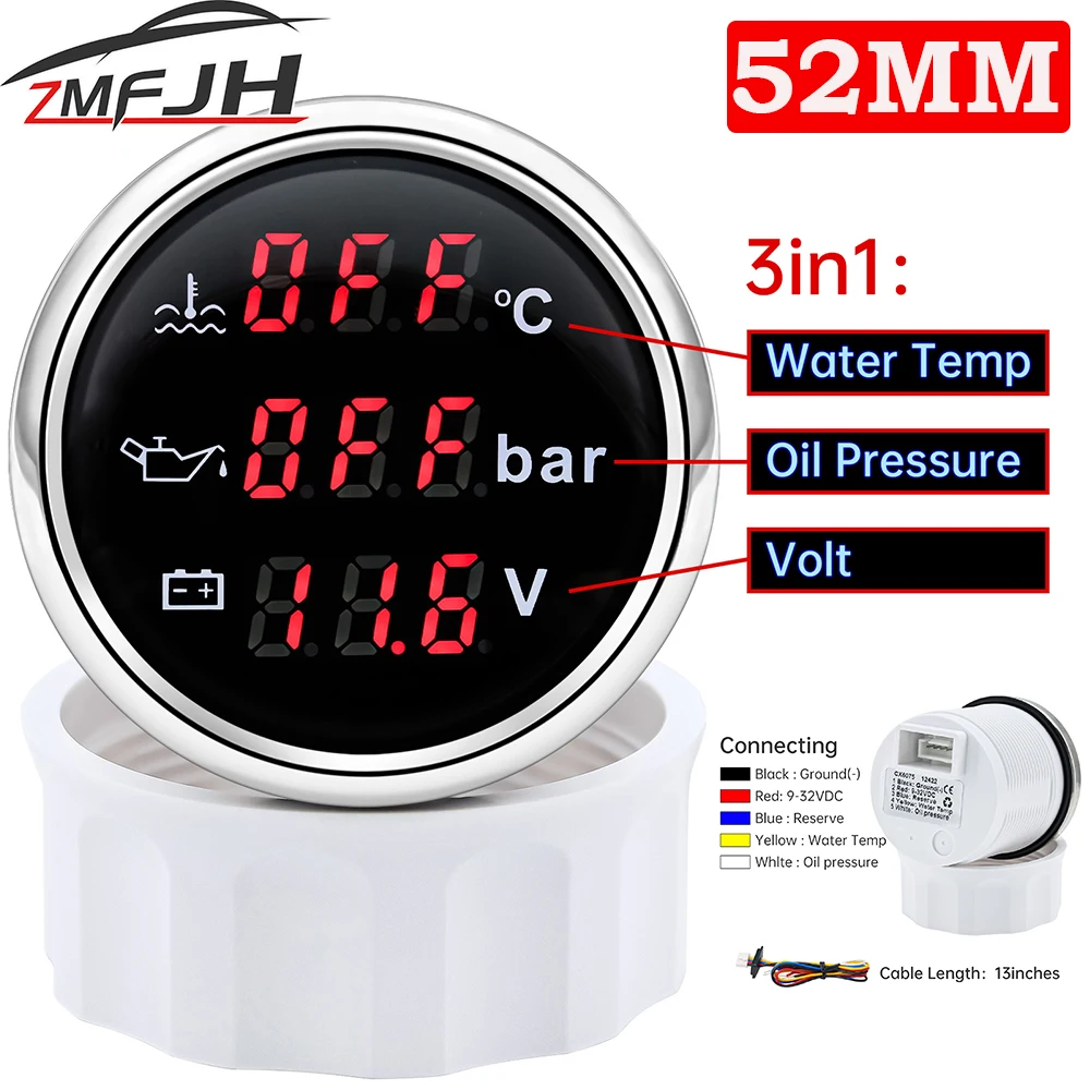 4in1 Car Digital Meter Oil Pressure Voltage Water Temperature Fuel Oil Pressure Voltage Meter Display with white face dial &. Oil pressure gauge sender,oil pressure indicator,52mm/2in 12v universal car electromagnetic oil pressure gauge indicator. Includes oil pressure, voltage, and water temperature. Comes with complete accessories for installation. Three gauges monitor engine oil pressure, water temp and voltage, gauges illuminate with incandescent bulbs for around the dial lighting, red & green light bulb covers for. Oil Pressure Voltage Meter.