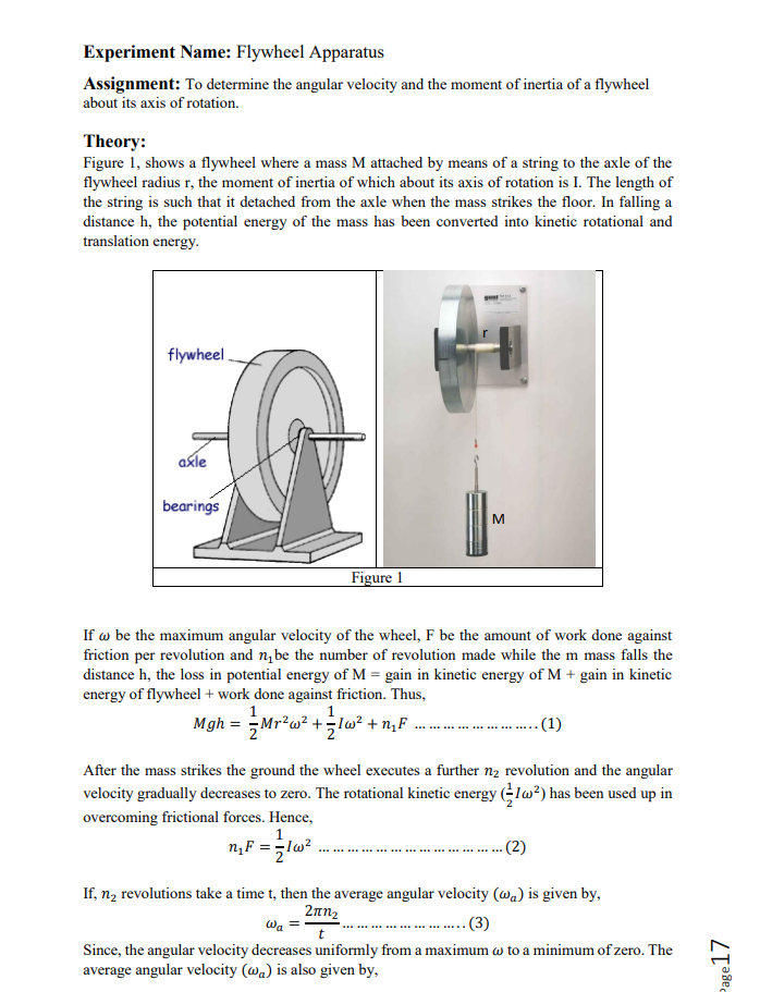 Report FOR Flywheel Apparatus Pakmok EXPERIMENT 9 FLYWHEEL APPARATUS Flywheel Apparatus Lab Report Flywheel apparatus string meter rod weights stopwatch theory introduction: Students measured the angular acceleration of the flywheel when subjected to different torques provided by hanging weights. The results show the angular acceleration of the flywheel,. Determination of moment of inertia of a fly wheel. A flywheel apparatus consists of a flywheel, hanger with known masses, weight, stopwatch and measuring tape.. Flywheel Apparatus Lab Report.