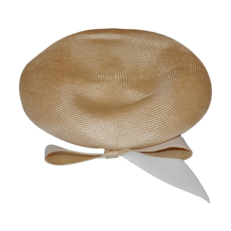 Adolfo Cream Straw Beret with Matching Large bow For Sale at 1stdibs