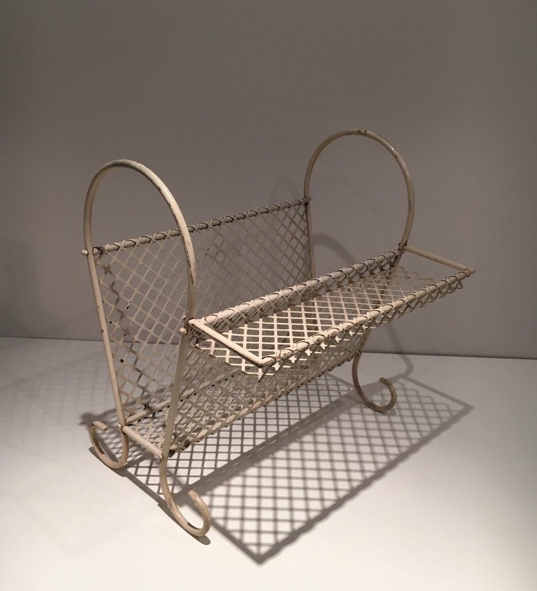 Vintage White Metal Magazine Rack for sale at Pamono