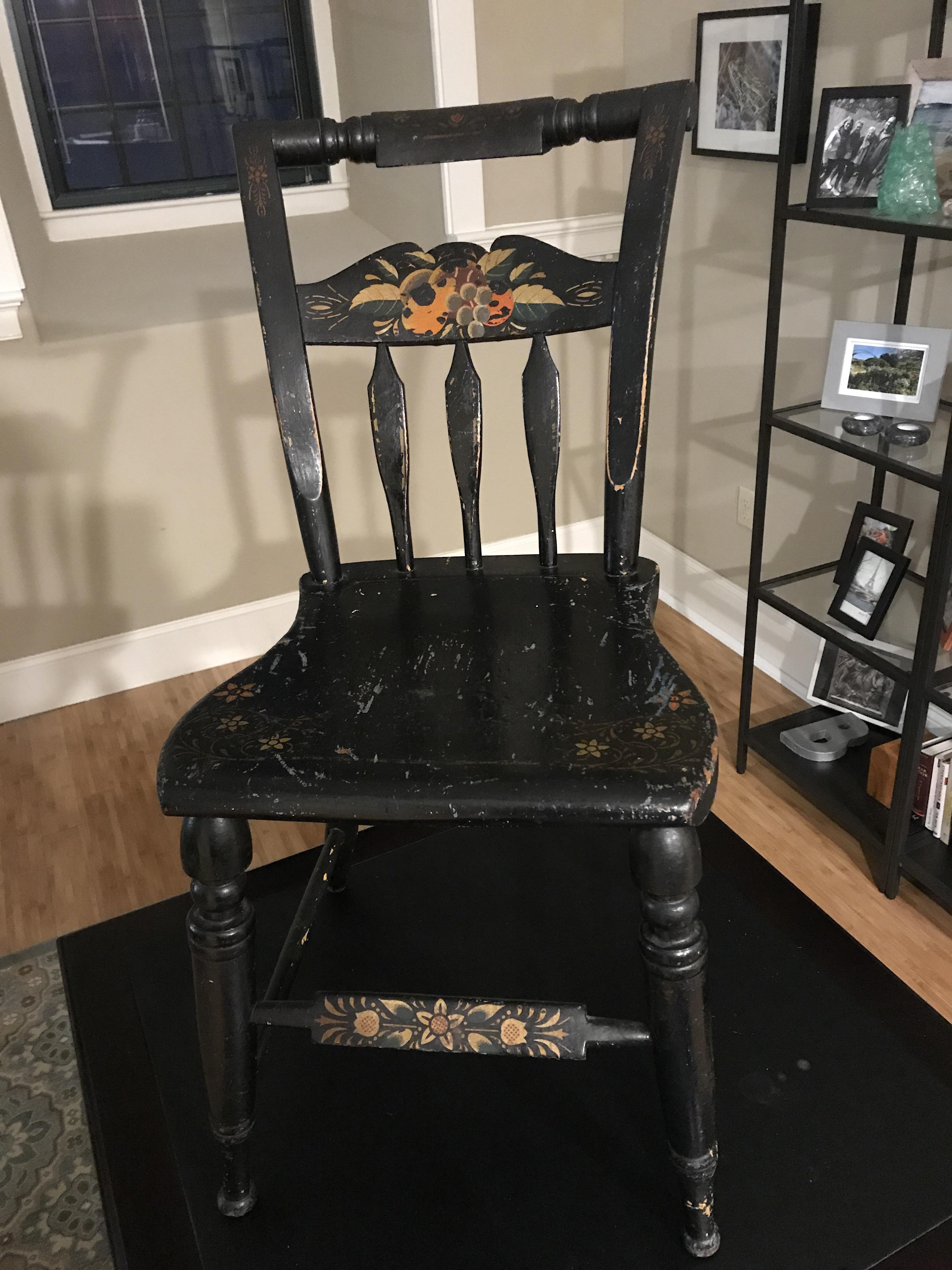 Hitchcock chair (reproduction)? InstAppraisal How To Refinish A Hitchcock Chair I am repainting a set of 1970's hitchcock chairs.music: Using the same stencils, materials, and parts as are used in making. As a result the black paint on the arm and top rails has worn off from handling, and there are 'table rub' marks on the. Based out of the hitchcock factory in riverton, we specialize in the repair and. How To Refinish A Hitchcock Chair.