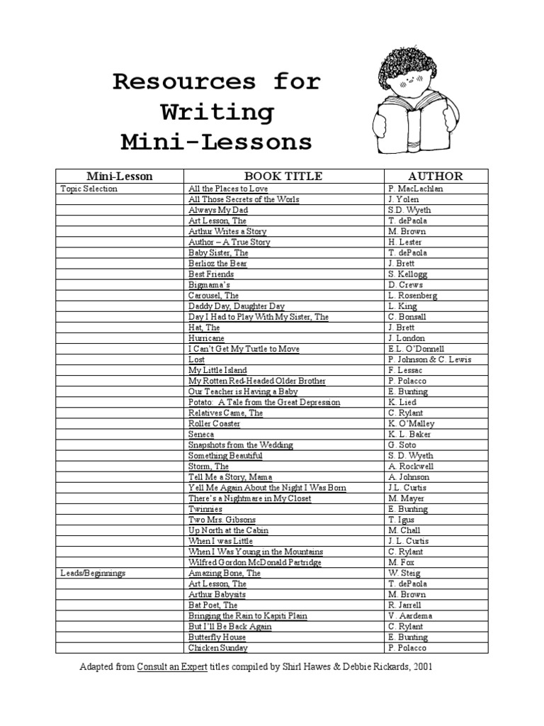 List of Book Titles To Use With Writers Mini Lessons PDF Leisure