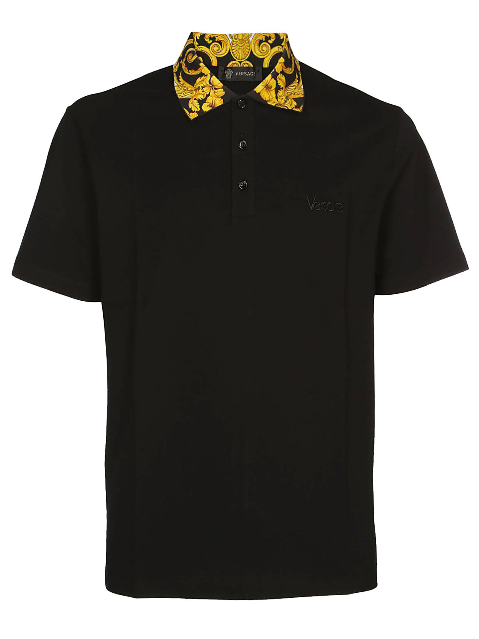 Versace Baroque Collar Polo Shirt In Black ModeSens