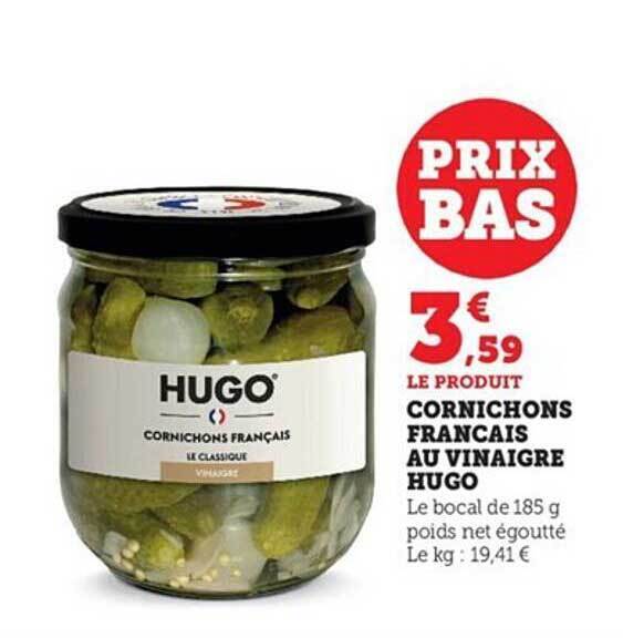 Promo Cornichons Français "hugo" chez E.Leclerc iCatalogue.fr Cornichons Francais Hugo D’est en ouest, nos cornichons sont cultivés et récoltés par nos 22 agriculteurs partenaires. Cultivés, récoltés et mis en bocal en france. Cultivés, récoltés et mis en bocaux en france ! Français, engagé, à croquer ! découvrez les cornichons frais français au vinaigre : Le pot de 210g à retrouver en drive ou livraison au meilleur prix dans le. Cornichons Francais Hugo.