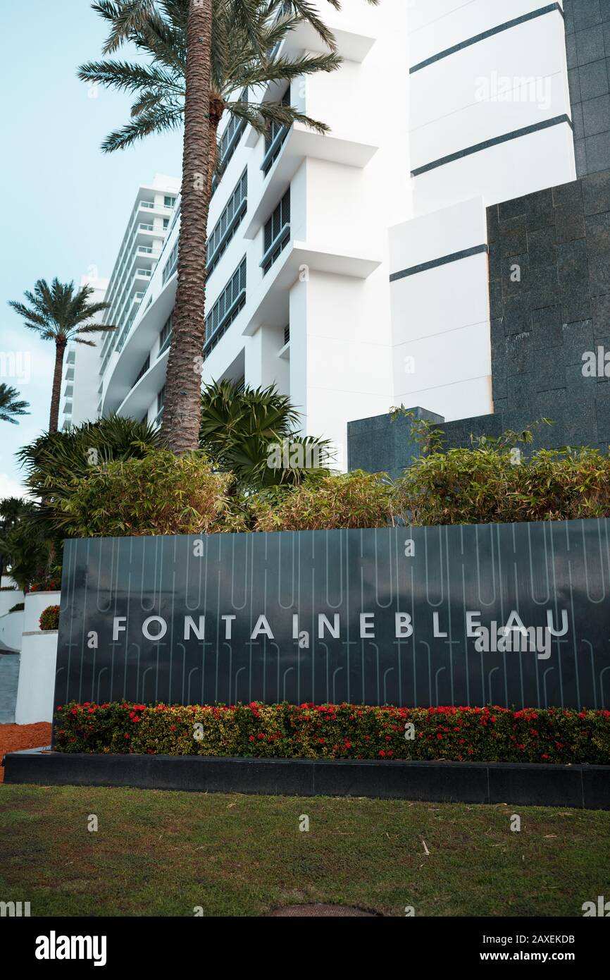 Fontainebleau hotel in Miami Beach, Florida resort sign logo Stock
